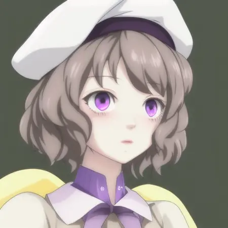 프롬프트: lora:kotoko-iwanaga:1 kotoko-iwanaga, 짧은 머리, 하얀 베레모, 갈색 머리, 보라색 눈