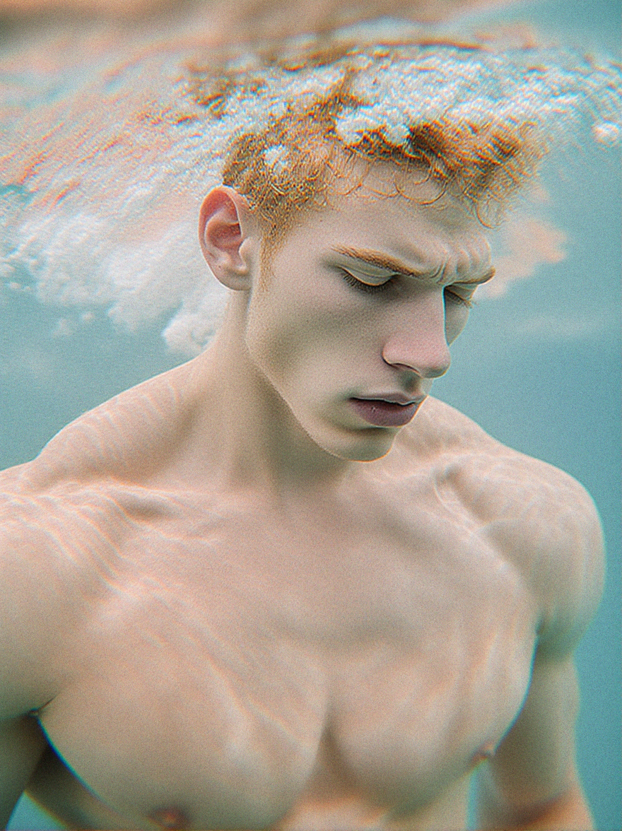 Underwater photography with a dreamlike, distorted, and surreal style.