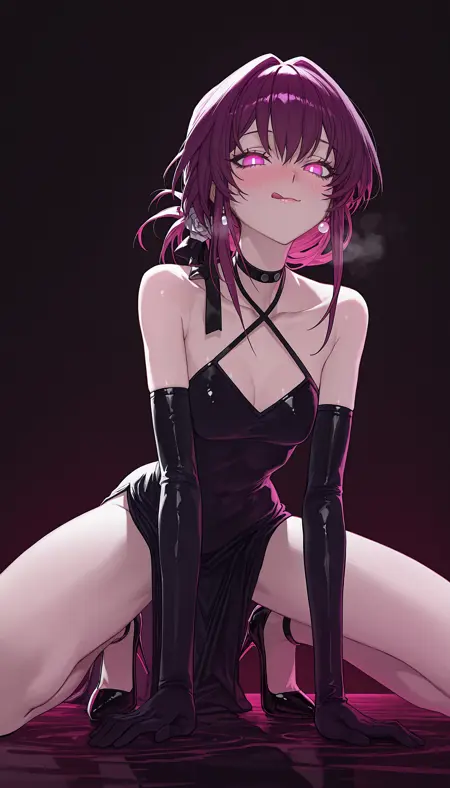 吊带连衣裙,交叉吊带,首饰,黑色项圈,肘部手套,