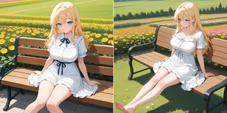 この設定は、足を伸ばした状態でキャラクターをポージングします。通常、足はフレーム外へ伸びるため、booruタグだけで足のポーズを調整するのは難しく、この設定を作成しました。具体的には、「膝を曲げない」状態で、「足が空に浮いている」ポーズを目指しています。