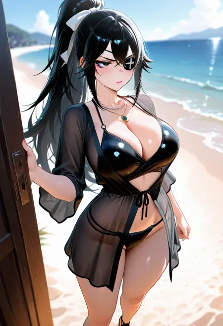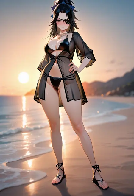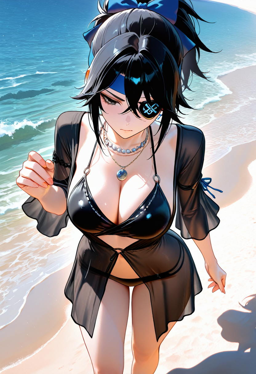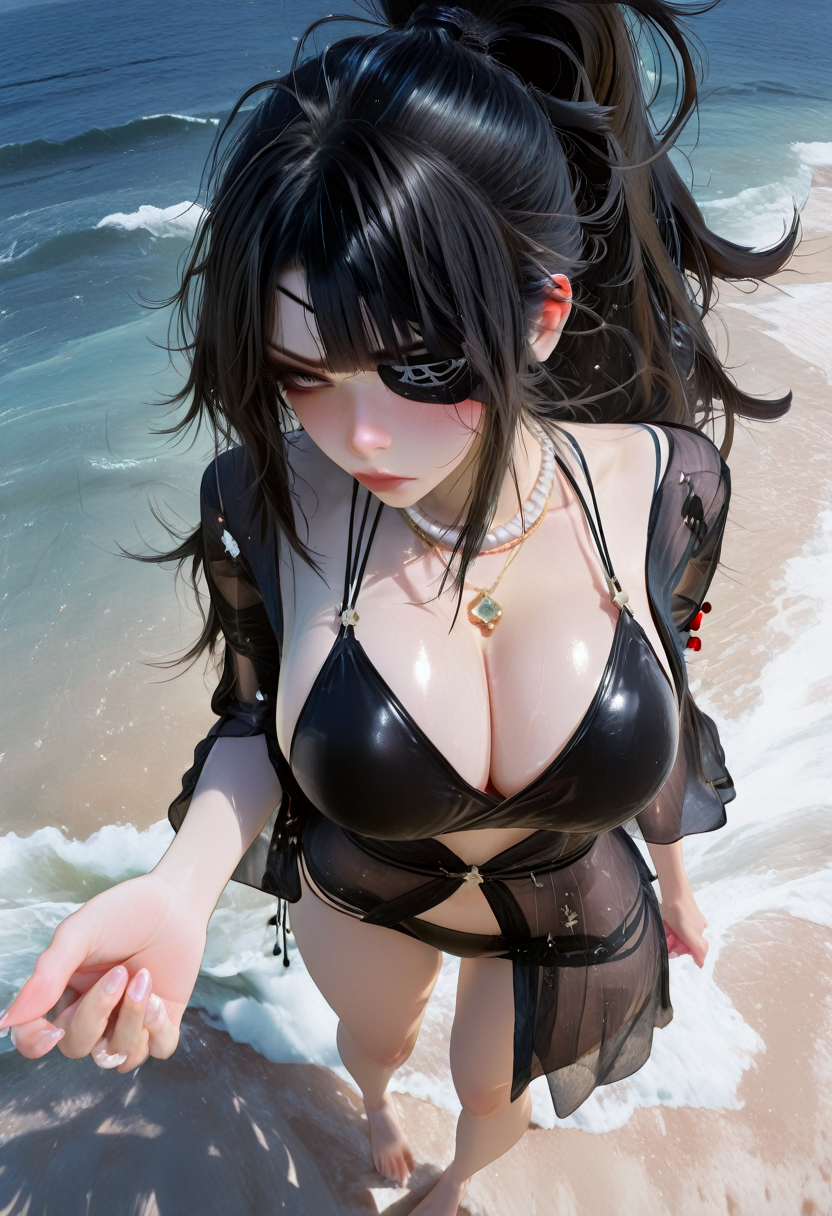 触发词(Trigger word)****: valda cui,necklace,cleavage,jacket,black bikini,black dress,swimsuit cover-up,striped clothes,see-through dress,sandals,