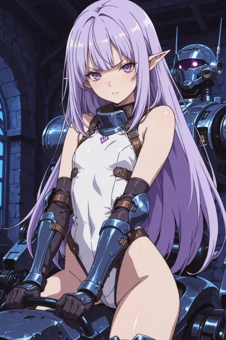 | Trained Words | ,rorono_dungeon_builder,pointy ears,violet hair,long hair,bangs,violet eyesCopied! purple hat with gold design,huge_brown_belt,short purple jacket with oversized sleeves:1.3,short white buttoned up shirt,midriff,mini_skirt,huge brown belt,Copied! white sleeveless_highleg_leotard,neckguard,arm_guardsCopied! |