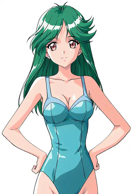 blue swimsuit, cleavage, collarbone, one-piece swimsuit, emerald swimsuit