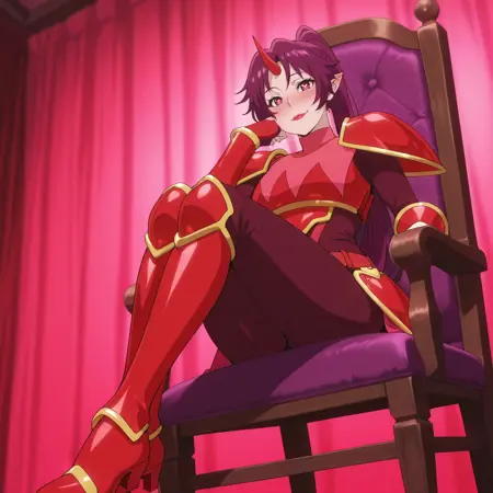 ReMonsterSato, 빨간 눈, 긴 머리, 보라색 머리, 포니테일, 단일 뿔, 립스틱, 뾰족한 귀,