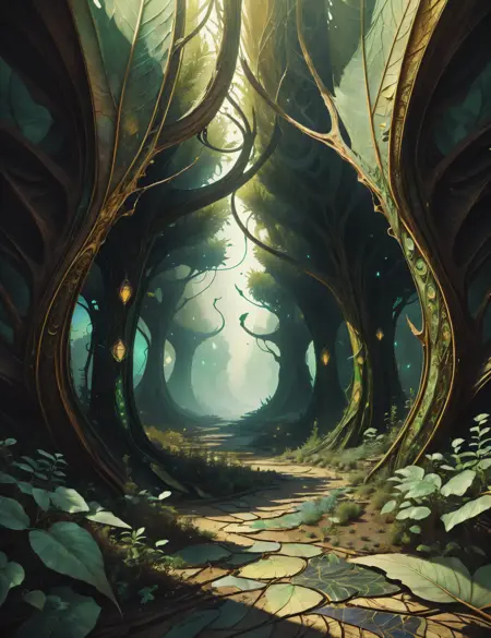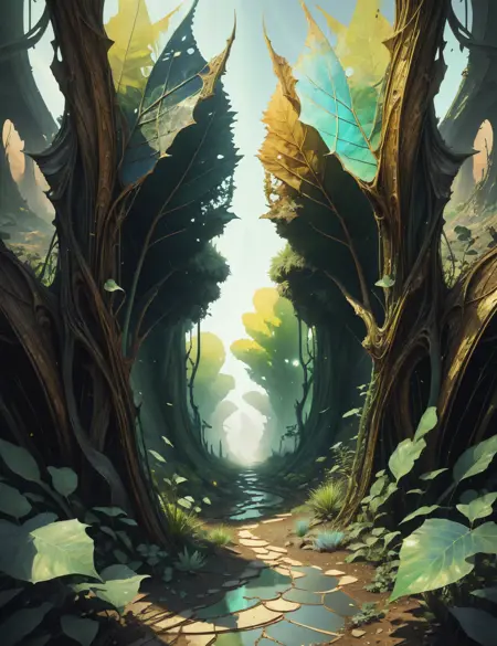 使用触发词,并搭配其他触发词以充分释放其潜力。尝试使用:叶脉、树木、森林、生物、有机,以及其他与不规则形状相关的词汇。