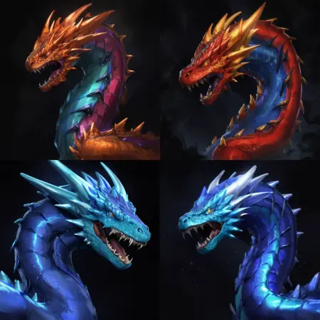 シンプルなスピードペインティング風のドラゴンのポートレートを生成するのに適したLoRA