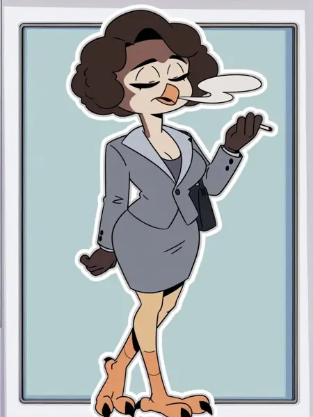 그녀는 똑똑하며, 과거 글롬골드의 직원이었고, 어떤 종류의 올빼미이다. 만화에서는 그녀가 약간 다르게 등장한다.