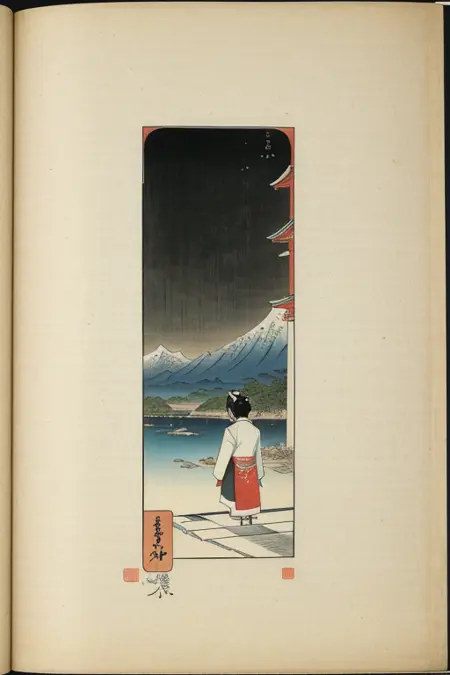 この埋め込みは、1835年から1858年までの彼の成熟期の30枚の画像に基づいています。(約1世紀後の1928-1932年の『新東京百景』に基づく私の埋め込みと、いくつか興味深い比較・対比が見られます。)この埋め込みは、ベースとなるSD 1.5で合計300ステップ学習され、トークンあたり16ベクトル、学習率0.004、バッチサイズ6、勾配ステップ数5で構成されています。