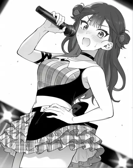偶像服装,格子裙,荷叶边裙,项圈,背后蝴蝶结,短款上衣,过膝袜,肚脐,无袖