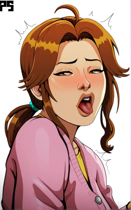 PONYXL_STYLE_Pumpkinsinclair_ownwaifu, 1girl, large breasts, chain, choker, cleavage, studded collar, hat, long hair, makeup, one eye closed, peaked cap, pink hair, poison (final fight), blue eyes, sweat, tongue out, licking lips, tank top, naughty face, big hair, looking at viewer, smile, lipstick, open mouth, bare shoulders, collarbone, off shoulder, blurry, portrait, eyeshadow, blue headwear, belt collar, ;q