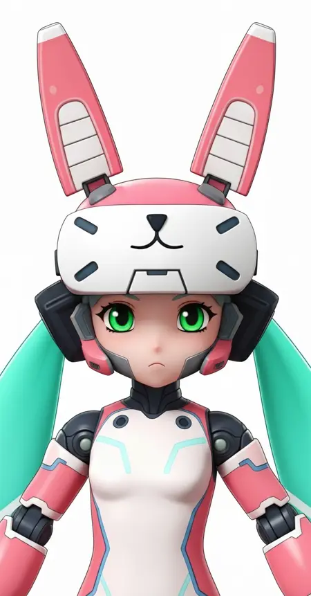 Negative Prompts: Human (male body), (mecha-style body), (Child Proportions: 1.4)), human, human skin, realistic skin, bare skin, cleavage, navel, nipples, fangs, makeup, human ears (six pack, abs, muscles, breasts).