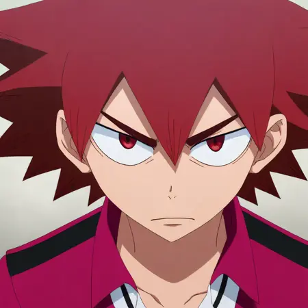 Naruk0 Shokich1, 1boy, red hair, male focus, red eyes, spiked hair, male focus, solo,