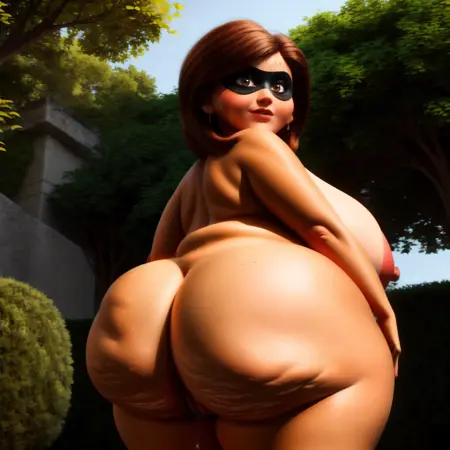 mature, woman, red superhero outfit with a symbol on the chest, long back boots, black gloves, mask, brown hair