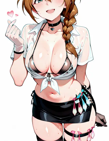 타이트 미니스커트, 슬릿 스커트, 벌거벗은 다리, 검은 짧은 스커트, 검은 스티레토 힐, 마이크로 팬티, 투명한 마이크로 팬티, 마이크로 팬티, 검은 마이크로 팬티, 프런트 크롭탑, DEFTieFrontCropTop, 앞쪽 매듭, 한쪽 앞 매듭, 중앙 닫힘, 흰색 타이트 셔츠, 타이트 셔츠 및 명찰, 콜라본, 클로즈 셔츠, 짧은 소매, 셔츠 클로즈, 팝 컬러, 투명한 셔츠, 검은 넥 링, 투명한 히그, 반투명 마이크로 비키니, 투명한 마이크로 비키니, 검은 마이크로 비키니, 투명한 흰색 스톡킹 장갑, 번역된 흰색 스톡킹 장갑,