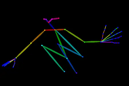OpenPose 骨骼结构及带提示信息的示例图像。