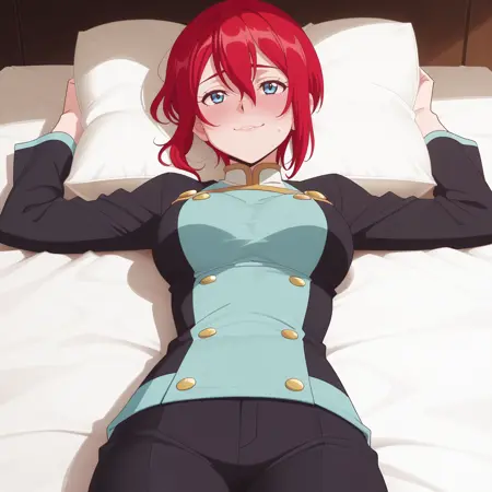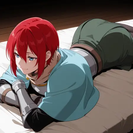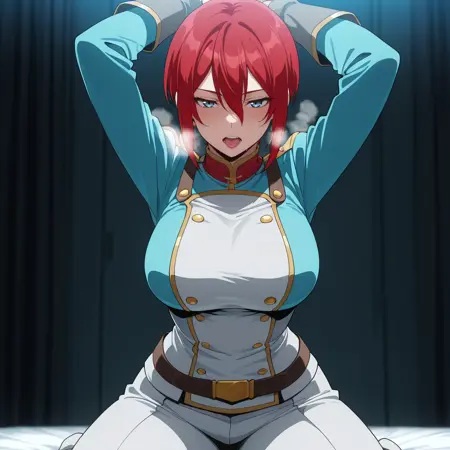 ReMonsterRubellia, blue eyes, red hair, short hair, hair between eyes,