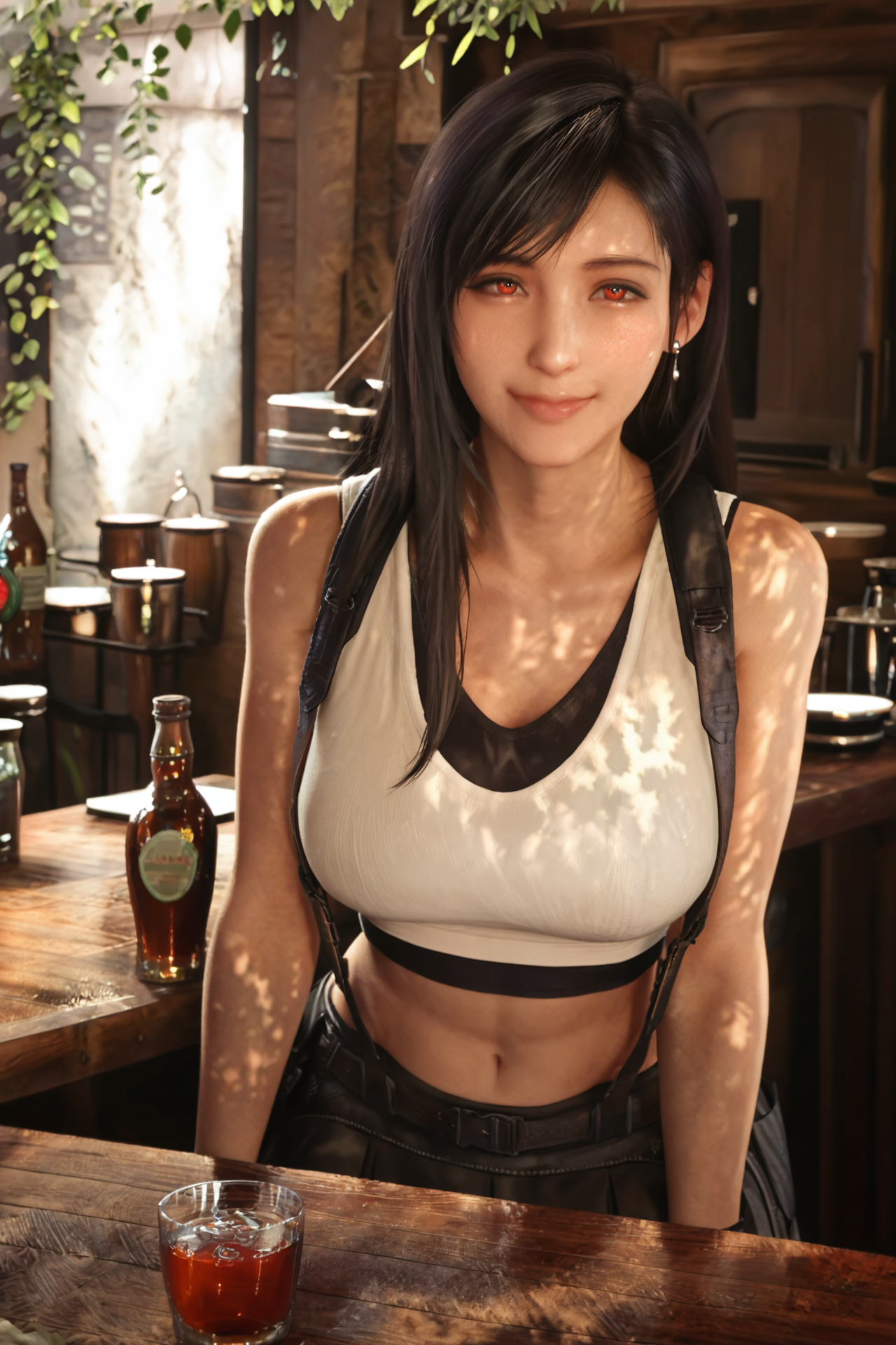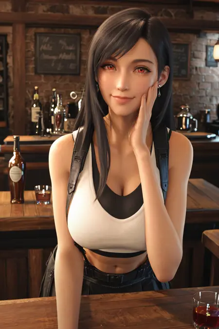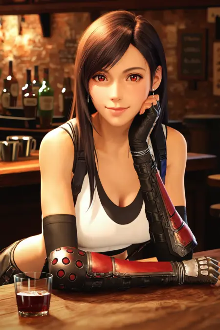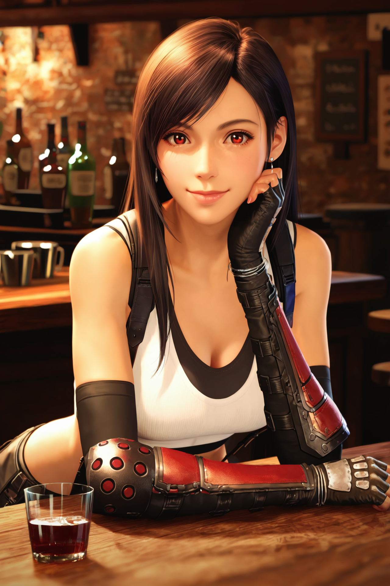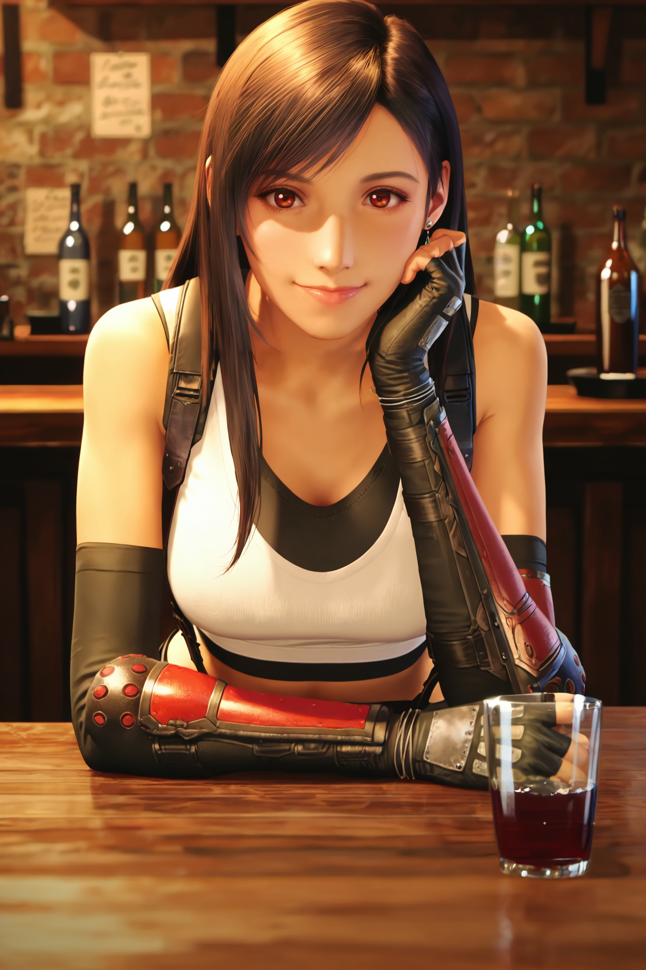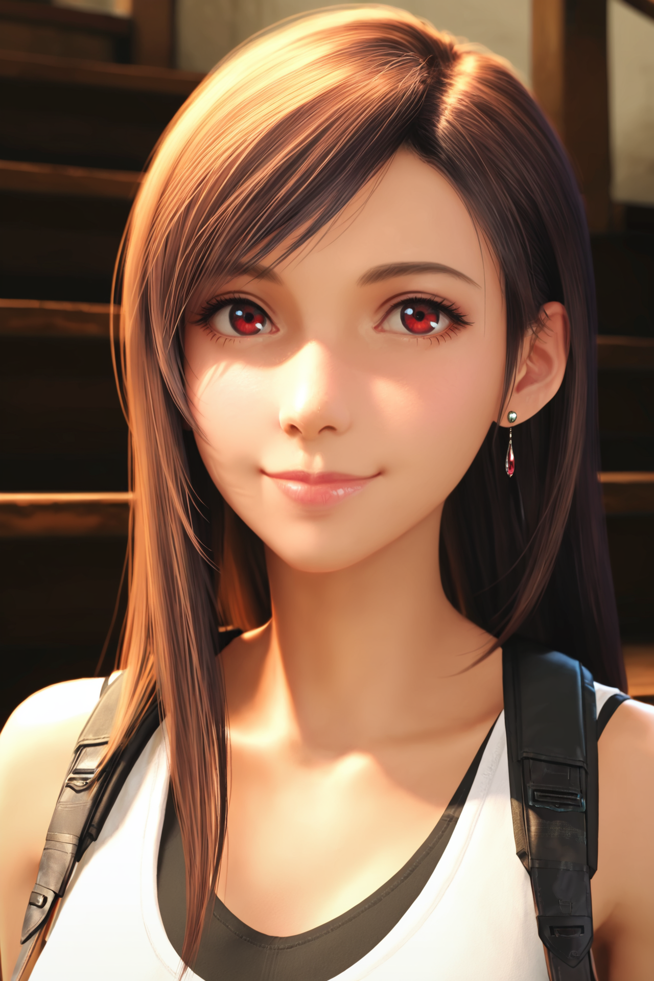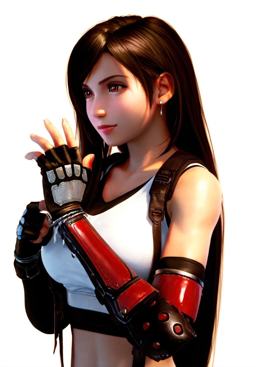 tifaremake, 1girl, long hair, brown hair, black hair, red eyes, brown eyes,