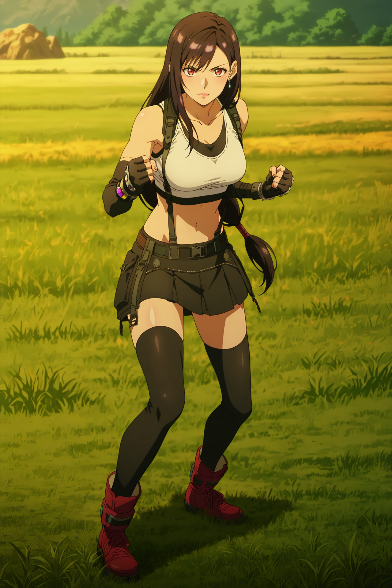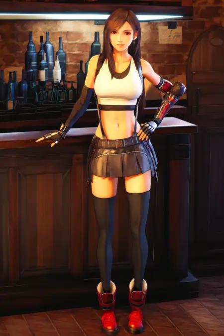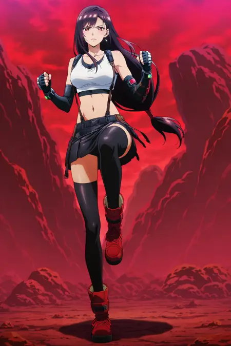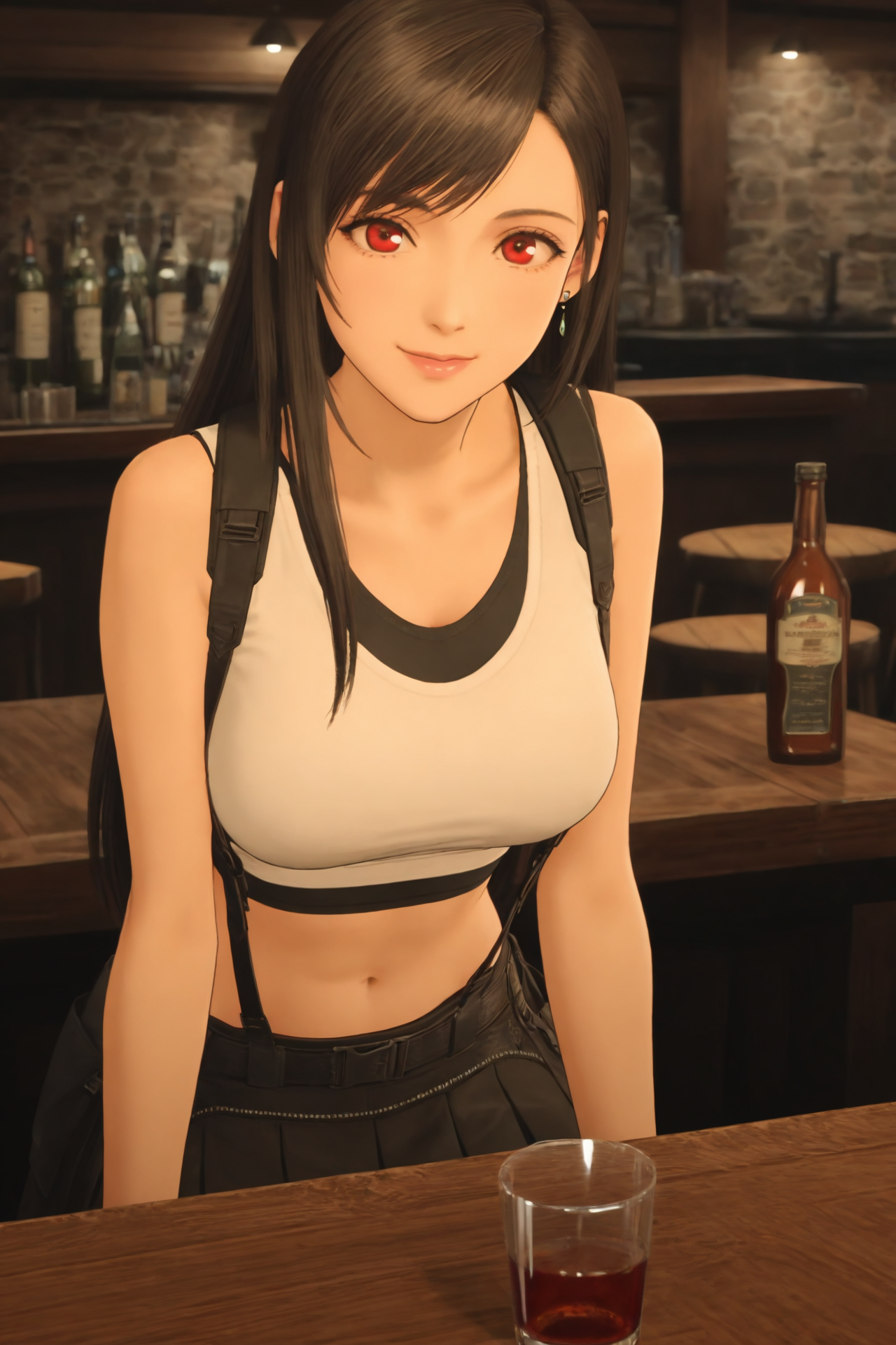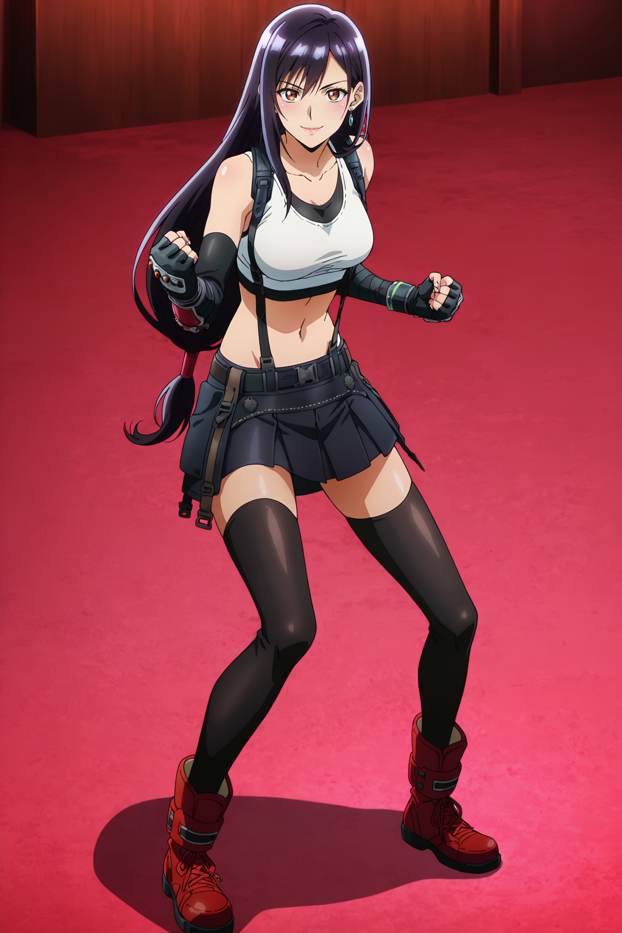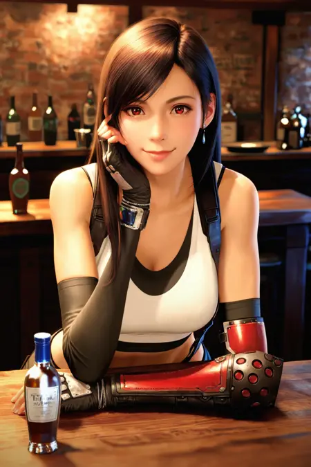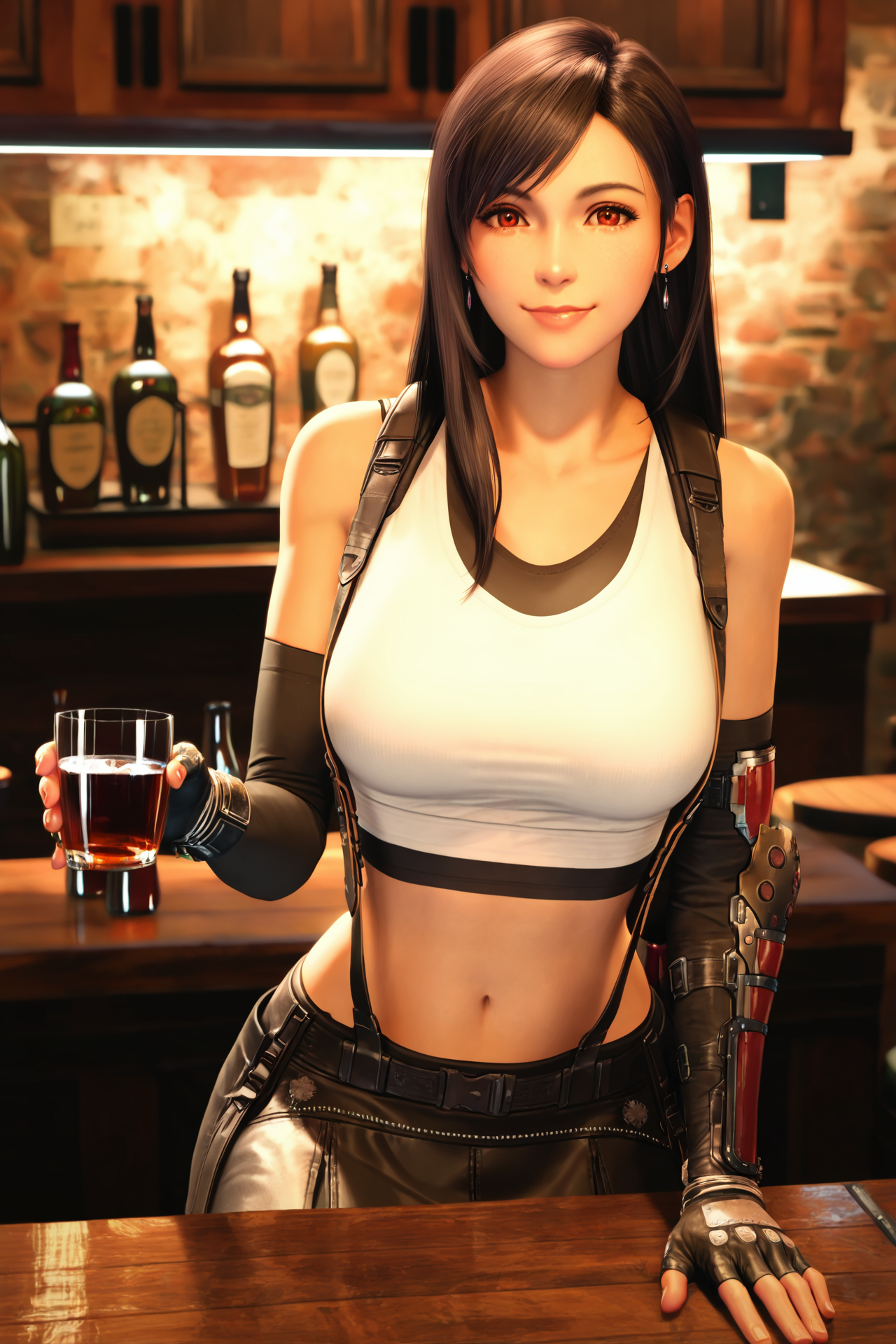 tifaremake, 1girl, long hair, brown hair, black hair, red eyes, brown eyes,