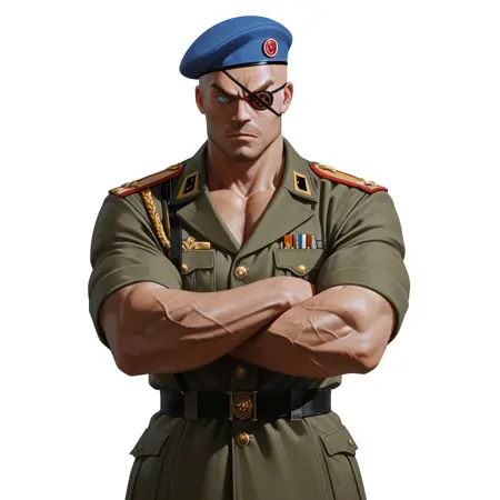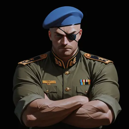 기본 외모: 안대, 베레모, 파란색 두건, 파란색 베레모, 군복