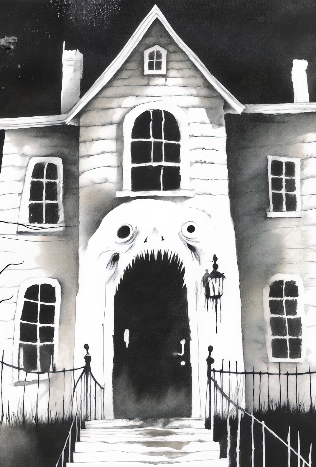 The artwork style of Stephan Gammill, made famous by the books Scary Stories to Tell in the Dark.