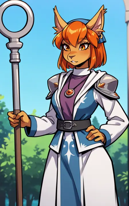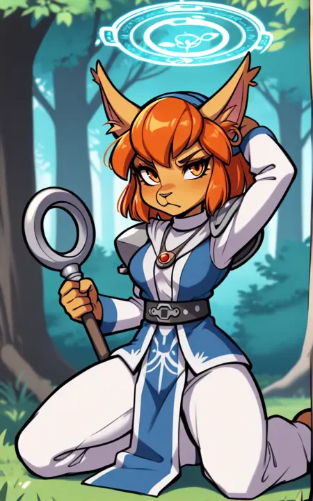 强化标签: 动物耳朵、毛茸茸、橙色头发、橙色眼睛、毛茸茸女性、短发、猫耳