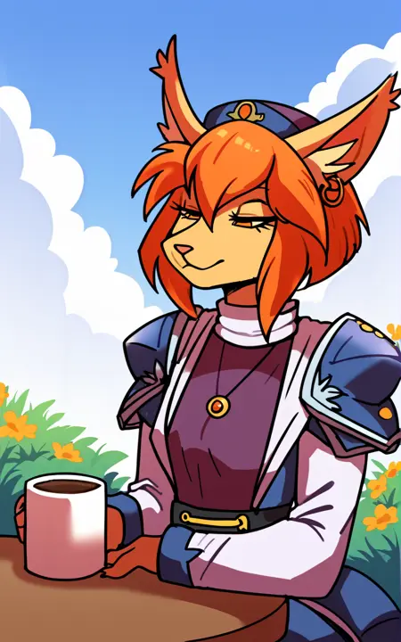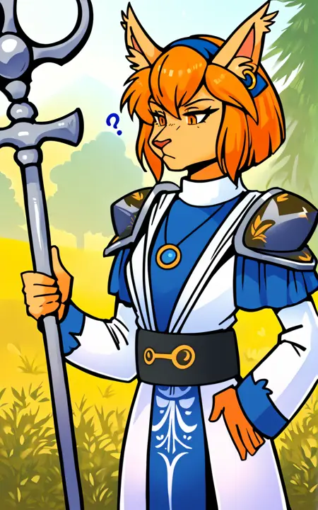 强化标签: 动物耳朵、毛茸茸、橙色头发、橙色眼睛、毛茸茸女性、短发、猫耳