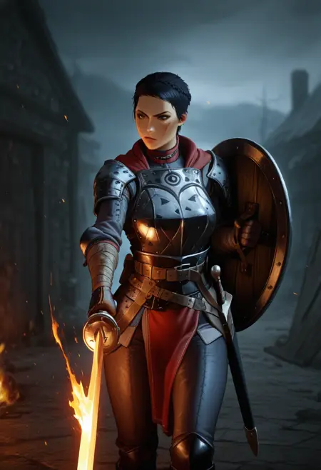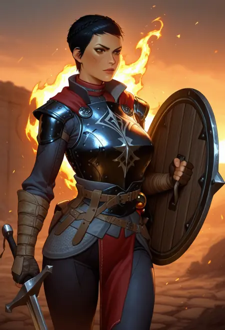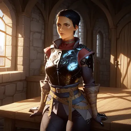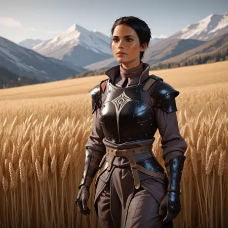 드래곤 에이지 시리즈의 캐서린 펜타가스트. 성직회의 추적자, 신성의 오른손. 학습 데이터는 3편인 드래곤 에이지: 인퀴지션에서 가져왔습니다.