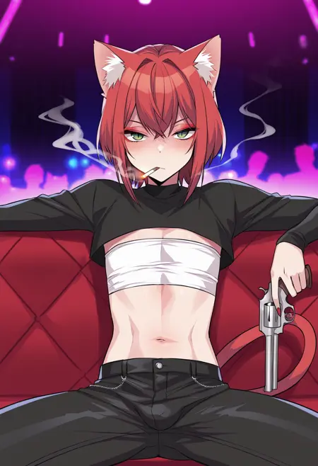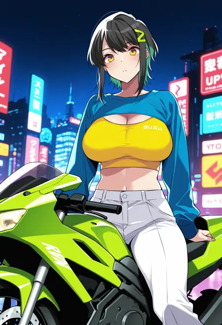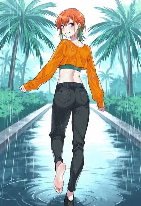 触发词:裤子、短上衣、长袖衬衫、长袖、露脐、短上衣,