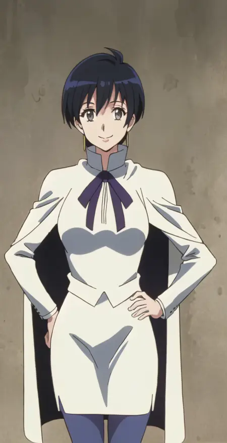 For main outfit(won't be too accurate) "neck ribbon, shirt, capelet, long cloak, cape, white short pencil skirt, pantyhose, long sleeves"