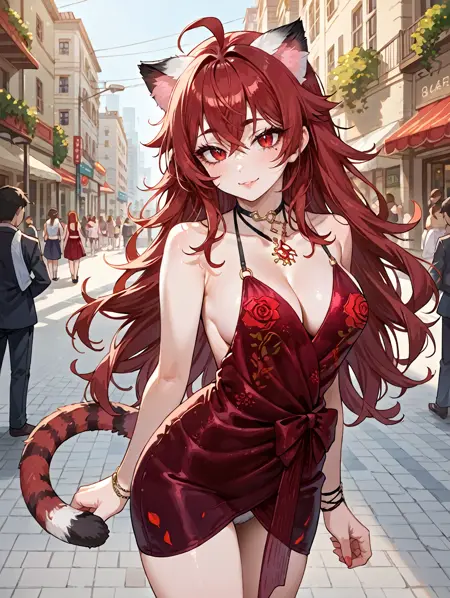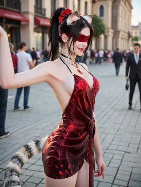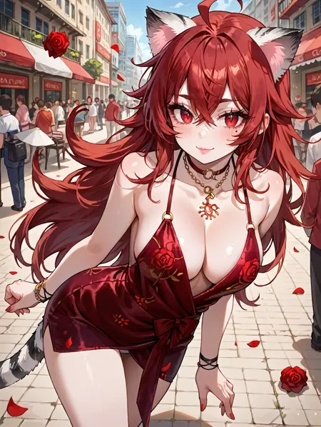 触发词(Trigger word)****: red dress,backless dress,rose,cleavage,floral print,viper ning,skirt,choker,