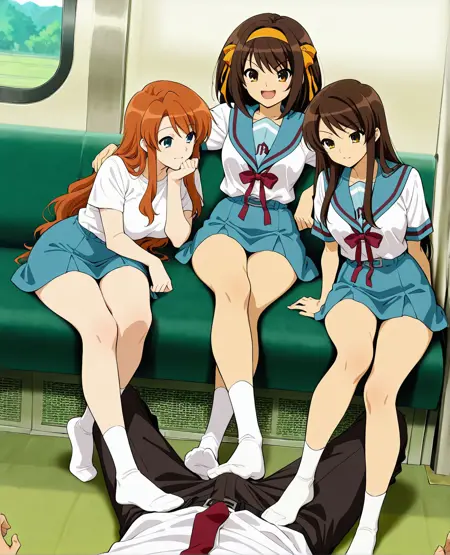 3소녀, 헤테로, 1소년, 양말, 치마, 하렘, 풋잡,