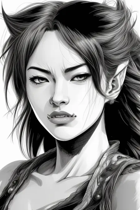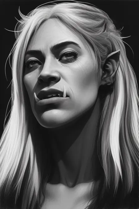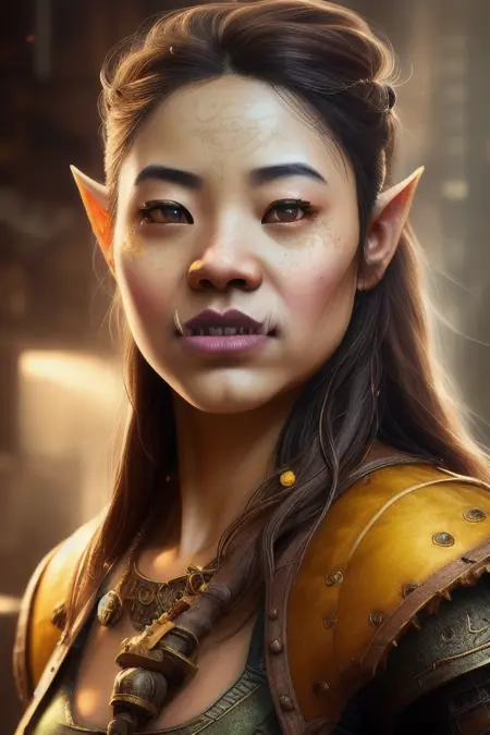 이 로라는 다양한 "오크 계열" 캐릭터를 생성하기 위한 것입니다. 원래는 샤피어런(Shadowrun) 오크를 만들어내기 위해 훈련된 모델이지만, 예상보다 더 유연한 성능을 가졌습니다. 옷을 입지 않은, 부드러운 배경 위에서 정밀하게 생성된 데이터셋으로 텍스트 인코더 없이 훈련되었기 때문에, 당신이 만들고자 하는 어떤 캐릭터라도 '오크화'하는 데 효과적입니다. 얼굴 특징을 더 두드러지게 하고, 긴 귀와 이빨을 추가해 줍니다.