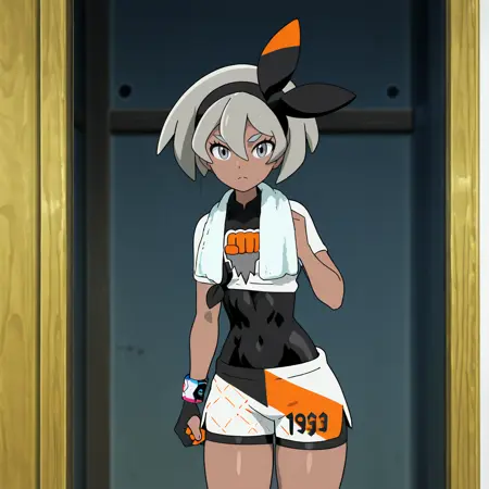 - 带毛巾的触发词:BeaTowel, 1girl, bea (pokemon), 动能带, 黑色发带, 衣服下穿紧身衣, 短袖, 短发, 印花短裤, 半指手套, 带领衬衫, 单只手套, 灰色眼睛, 深色皮肤, 蝴蝶结发带, 灰色头发, 深肤色女性, 刘海, 印花衬衫, 黑色紧身衣, 发丝间于双眼, 侧开衩短裤, 毛巾围在脖子上, 扎起的衬衫, 睫毛, 遮盖肚脐