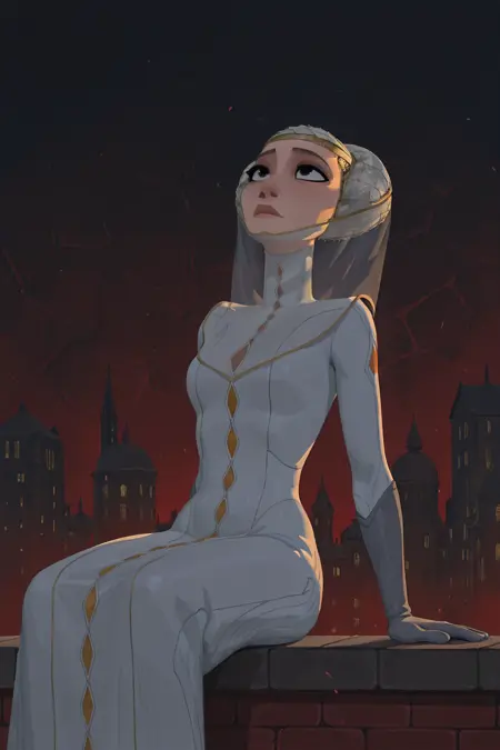 도움이 되는 키워드: 1girl, 두더지, 주름, 드레스, 멀, 머리묶음, 헤어넷, 장갑