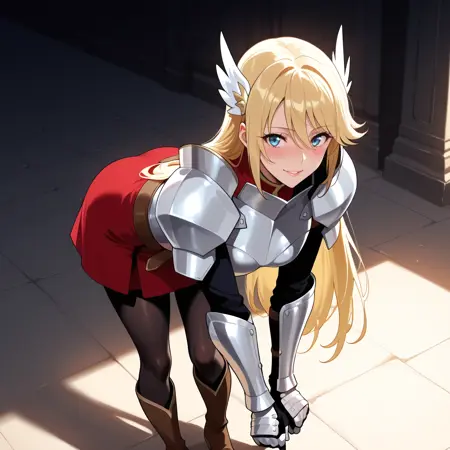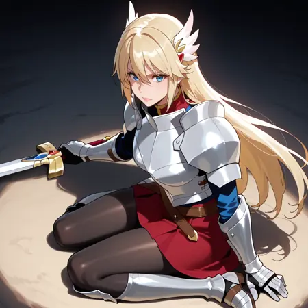 ナイト、鎧、胸甲、肩甲、赤いスカート、手甲、黒いタイツ、ブーツ、
