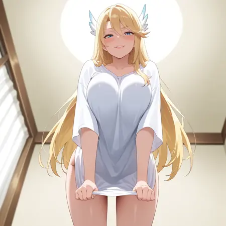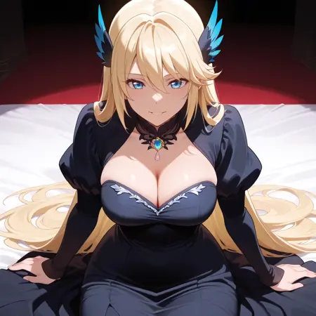 ReMonsterTheresa、青い目、金髪、長い髪、目の間の髪、頭部の翼、髪飾り、