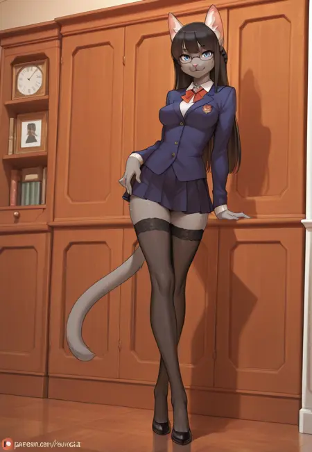 Serafima(iskra), anthro cat, furry female, black hair, straight hair with braid
