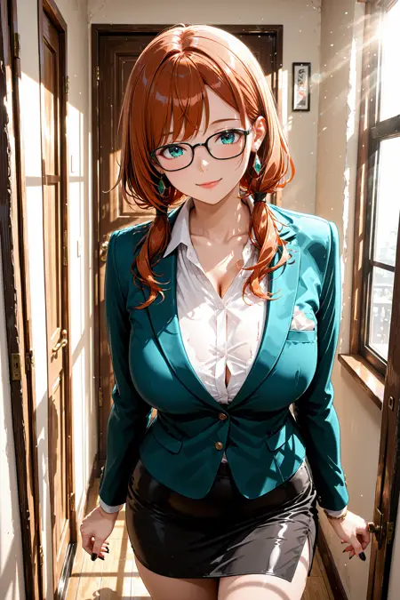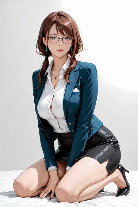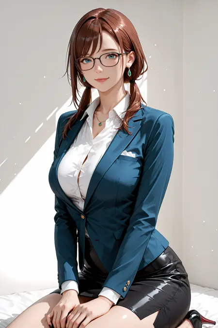 你可能还想在提示中加入“蓝色夹克、白色衬衫、有领衬衫、铅笔裙”,根据所用检查点,若希望发型与服装更一致,也可以加上“棕色头发”。
