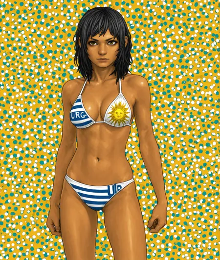 約束通り、このタグ付け方法と「低データセット」での適切なステップ数に関する私の仮説をテストしました。可能な限り「現実の」画像を最小限にしたい場合、できることはそれほど多くないからです。結果は成功したようで、南米諸国のフラグ bikiniを制作するというまた別のプロジェクトに自分を巻き込んでしまったようです(笑)。でも気にしません。毎日同じことを繰り返す単調さを打ち破り、また新しい実験で自分の快適ゾーンから抜け出せたからです。今回の学びを活かして、再び「Military Sans Frontiers」LoRAに戻るかもしれません。それこそ私がやりたかったプロジェクトです。きっとMetal Gear Solidシリーズをこんなに愛している私のことを、少し変だと思われるでしょう(笑)!でも、学ぶ機会を得られたことに感謝しています。同じことを繰り返していて行き詰まるたび、つまらなくなるからです。
