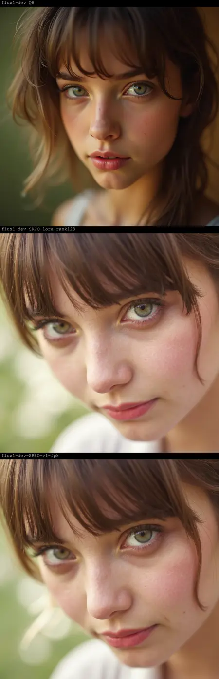 - Oficial = the original SRPO (Flux.1-Dev): tencent/SRPO