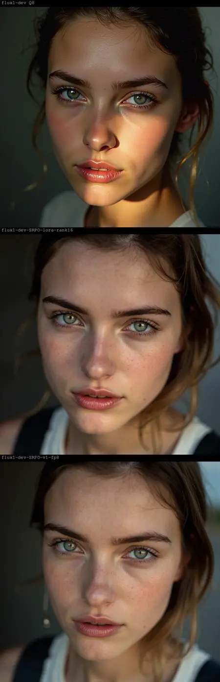 - 社区检查点:rockerBOO/flux.1-dev-SRPO(目前这些 LoRA 尚未在此处的 CivitAI 发布,但可在 Hugging Face 上找到)