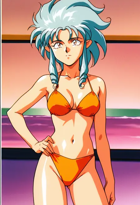 Trigger Words: tenchi_ova_style, retro, 90s, vhs, old screenshot, anime_coloring, grainy, traditional media, 1990s_\\(style\\), official_style, retro_artstyle