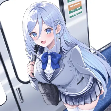 - iceschool,蝴蝶结,裙子,校服,过膝袜,西装外套,夹克,百褶裙,有领衬衫,衬衫,白色过膝袜,蓝色蝴蝶结,白色衬衫