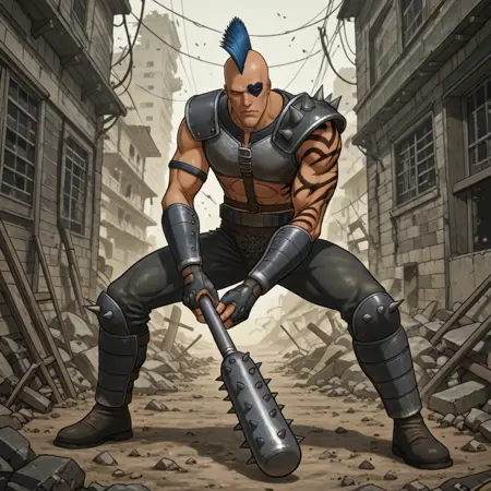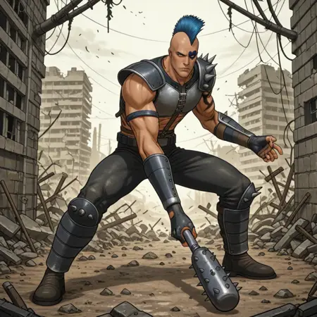북두무쌍 게임에서의 불법자입니다(게임을 모르기 때문에 보통 모히칸 캐릭터라고밖에)