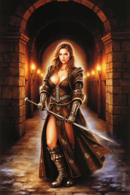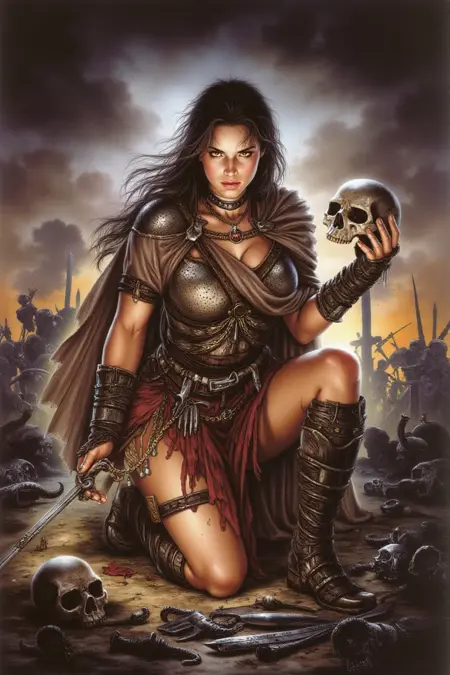 This LORA captures the darkly sensual, fantastical world of Luis Royo, known for his richly detailed, often apocalyptic dreamscapes. Ideal for generating images of mysterious warrior women, brooding sci-fi landscapes, and gothic fantasy scenes. The style emphasizes dramatic lighting, heavy contrast, ethereal skin tones, metallic textures, and evocative, often erotic, poses.