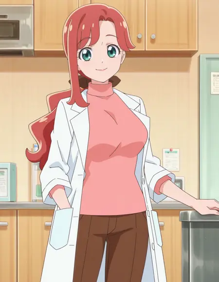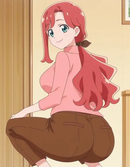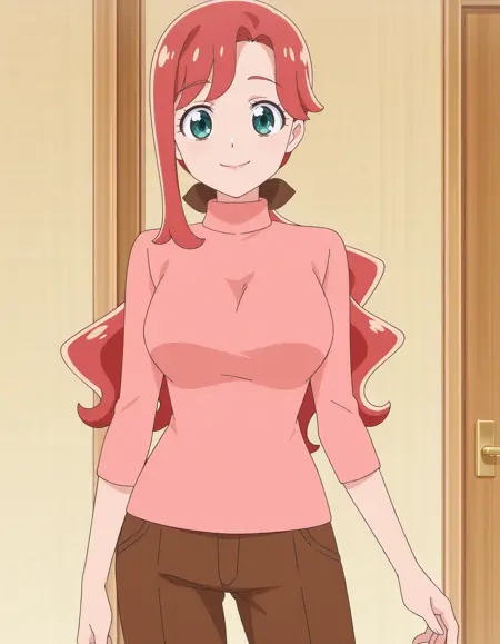 アニメスクリーンキャップ、シングル、1人の女の子、犬飼陽子、茶色のズボン、ピンクのセーター、タートルネック、lora:inukaiyouko_IL:0.8 高解像度、素晴らしい品質、最良の品質、非常に美的、傑作、absurdres,