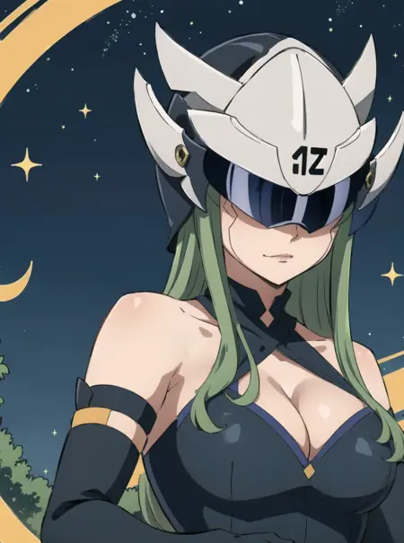- "witchbattledress" 通常生成头盔+面罩的造型。可添加 "combat visor, combat helmet, concealed eyes" 以帮助实现该造型。