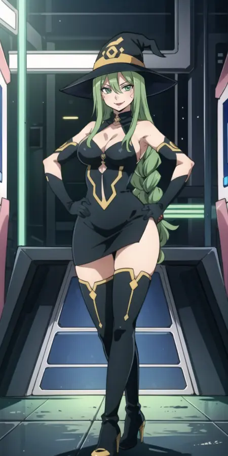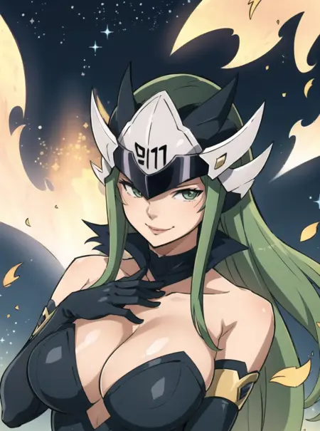 • "witchbattledress" generally generates the helmet + visor look. Add "combat visor, combat helmet, concealed eyes" to help with achieving said look.