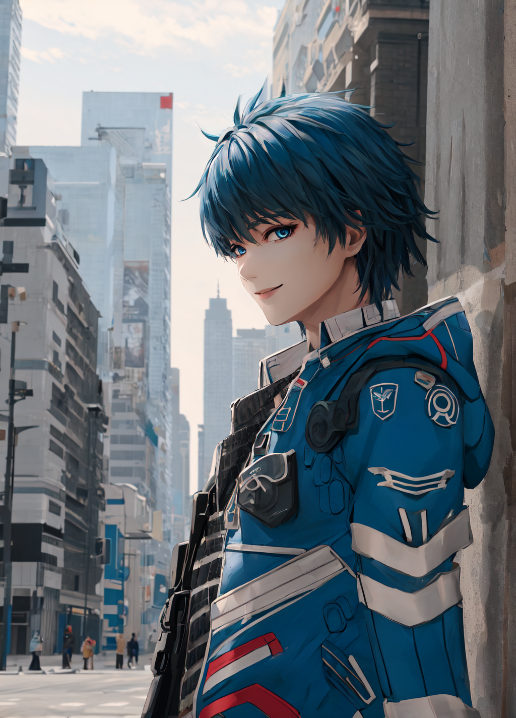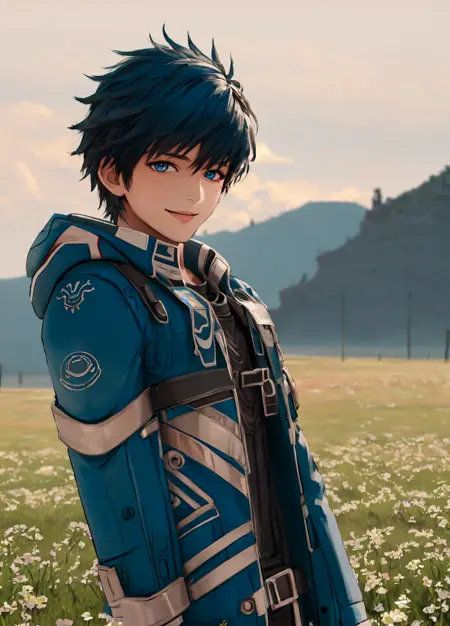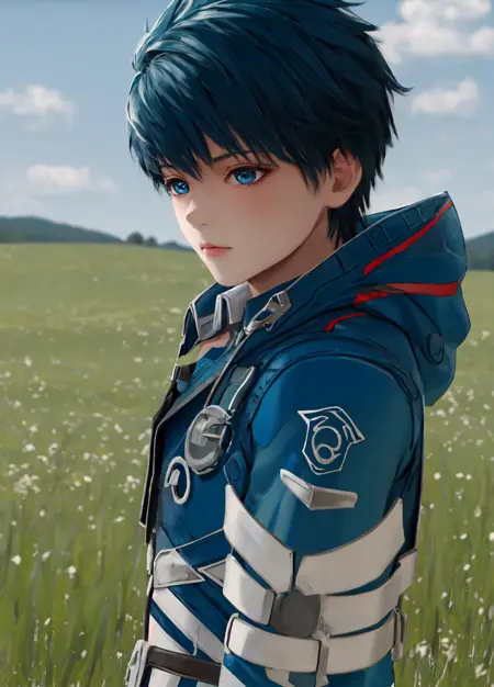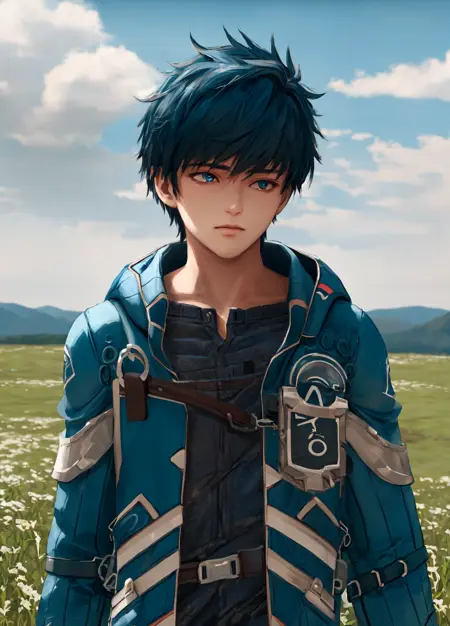 触发词是 FidelCamuze,你也可以使用短发、蓝发、蓝眼。如果你使用的模型生成的结果过于女性化,可以加上 1boy、boy、male。权重 0.8 已经能产生不错的效果。