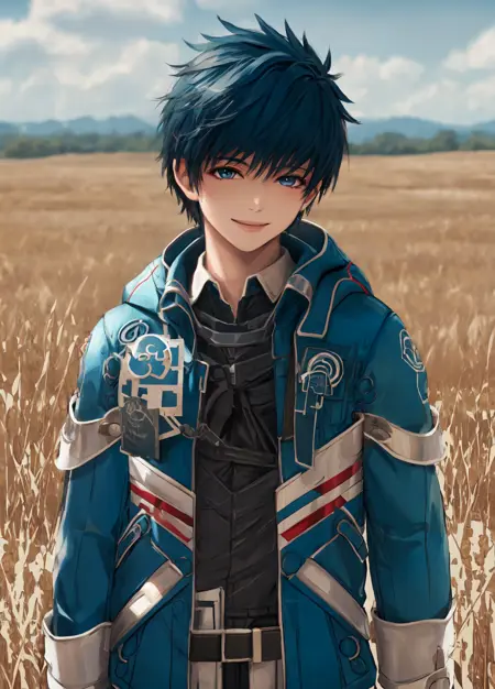 触发词是 FidelCamuze,你也可以使用短发、蓝发、蓝眼。如果你使用的模型生成的结果过于女性化,可以加上 1boy、boy、male。权重 0.8 已经能产生不错的效果。